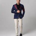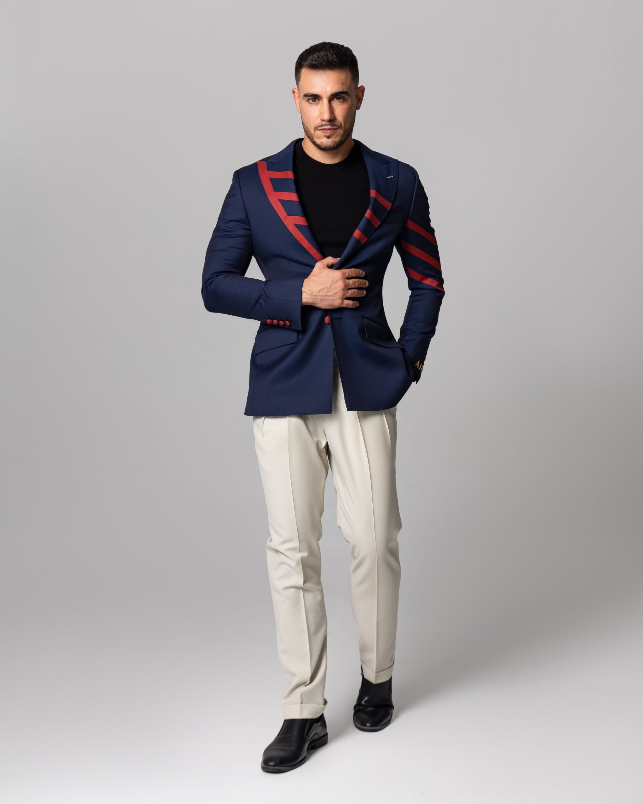 As the warm hues of sunset meet the cool tones of the blue hour, a fleeting magic unfolds, lines and silhouettes that define the final moments before nightfall. Inspired by this captivating transition, this designer suit captures the essence of summer evenings in rich, vibrant tones.